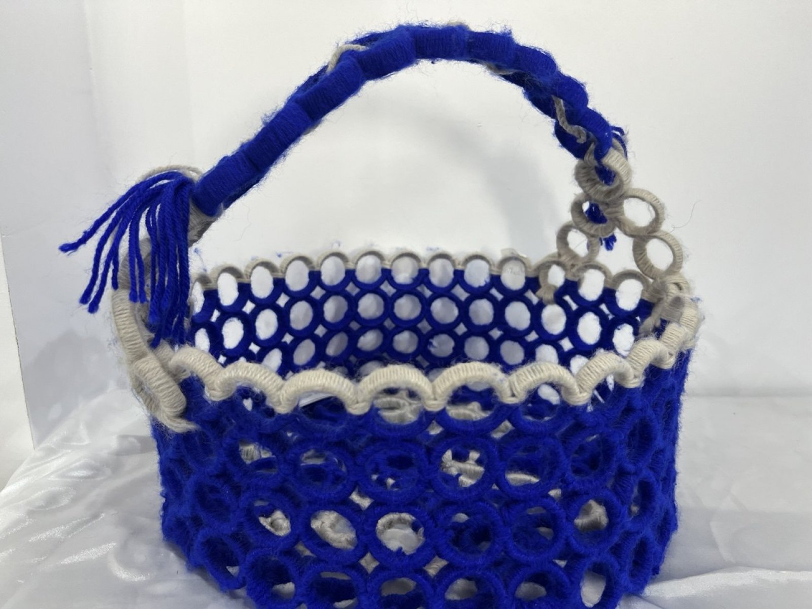 تقول نورة عن نفسها: “أنا نورة أهوى صناعة الحقائب اليدوية باستخدام خيوط الصوف والحلقات البلاستيكية، فهي من الحرف التي تجمع بين الإبداع وإعادة التدوير. أستمتع بتصميم كل حقيبة بطريقة فريدة، حيث ألفّ الخيوط حول الحلقات لتكوين شكل متناسق وجميل، ثم أضيف اللمسات النهائية مثل المقابض والشرابات لتكمل جاذبية التصميم. هذه الحرفة تعلّمني الصبر والدقة، وتمنحني شعورًا بالفخر لأنني أستطيع تحويل مواد بسيطة إلى قطعة أنيقة يمكن استخدامها بكل فخر وجمال.”